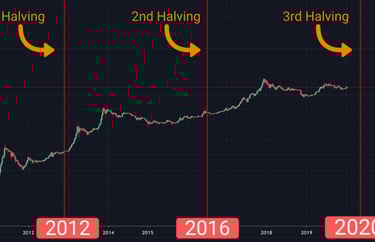 3 січня 2009 року, коли з'явилася мережа біткойнів, Сатоші Накамото добув перший генезисний блок біткойну, тобто нульовий блок, за який було отримано винагороду у розмірі 50 біткойнів. За 13-ти річну історію Біткойна ми були свідками лише трьох халвінгів.