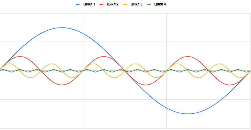 Ці інструменти у нас з’явилися не тому, що математики трейдили ночами. Колись фізики за допомогою розкладання на ряди Фур’є навчилися розкладати будь-яку хвилю (звук) на суму хвиль (звуків), які її становлять. Те ж саме робить трейдер, коли великий масив даних (графік без тренду і флуктуацій) намагається розкласти на суму циклів.